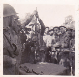 Soggetto rappresentato: Le reclute del 20. Battaglione Internazionale vengono istruite sull\'utilizzo del fucile mitragliatore